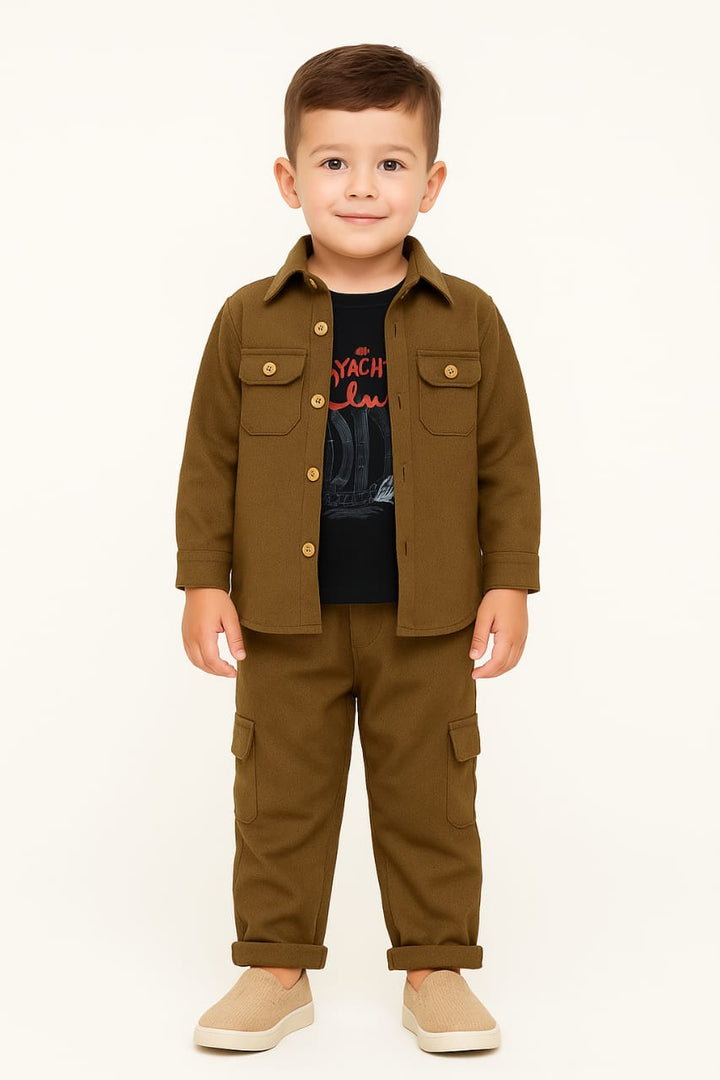 Desert Brown Boys Winter Cord Set - 3 Pieces Suit