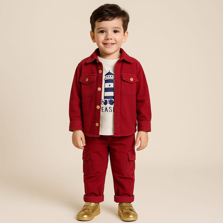Maroon Boys Winter Cord Set - 3 Pieces Suit